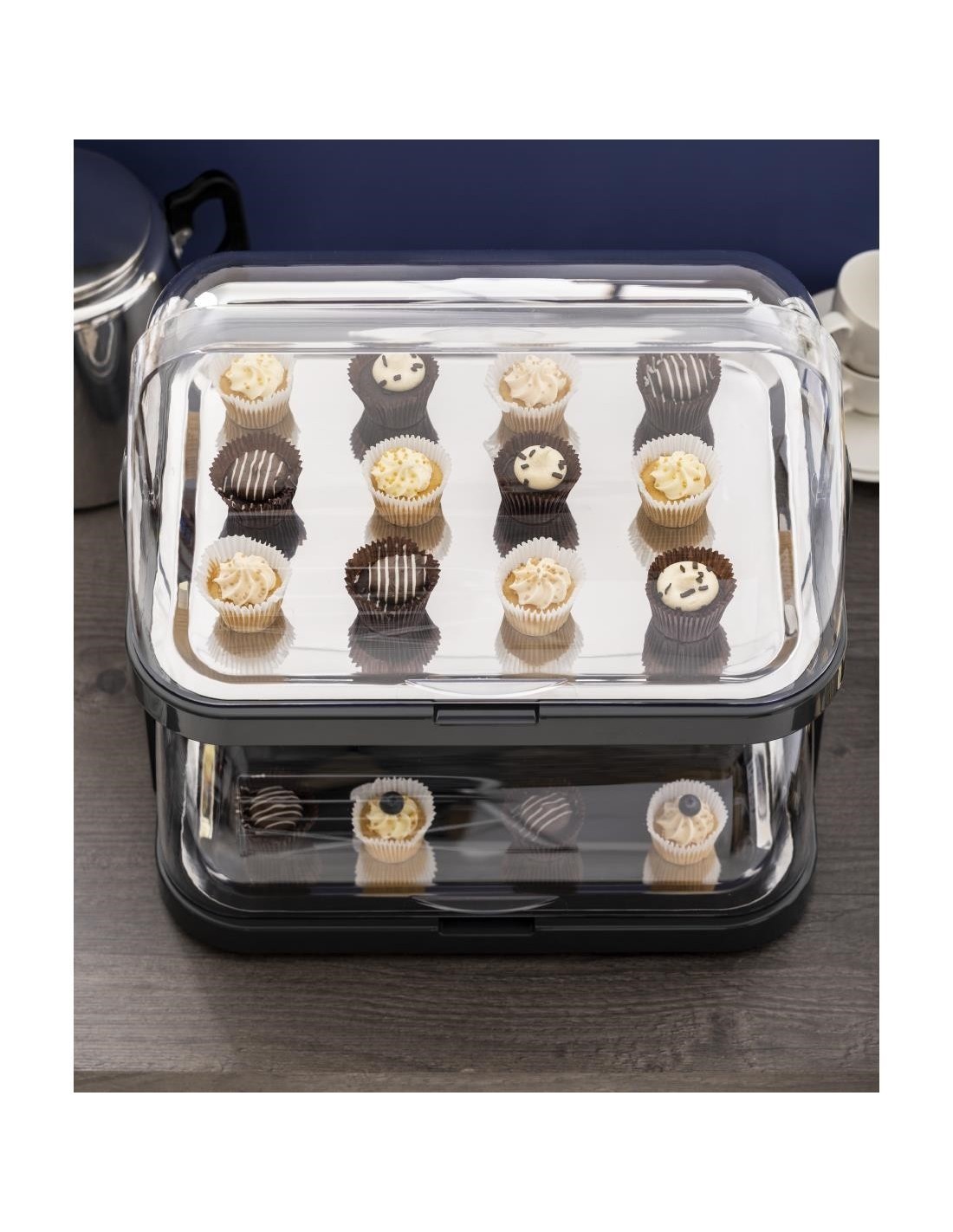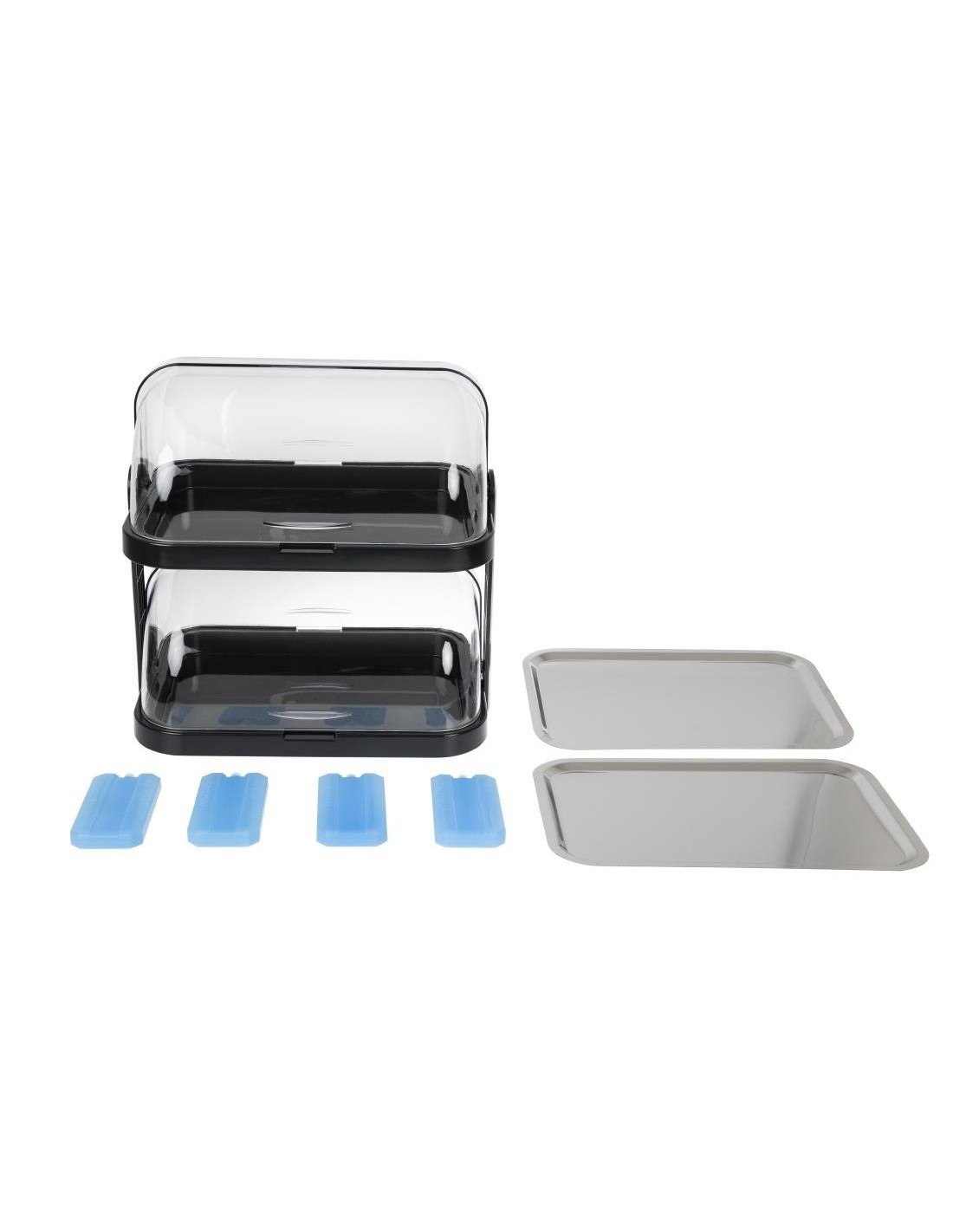 Deux éléments de refroidissement sous chaque plateau pour garder le contenu plus frais lorsqu'il est présenté