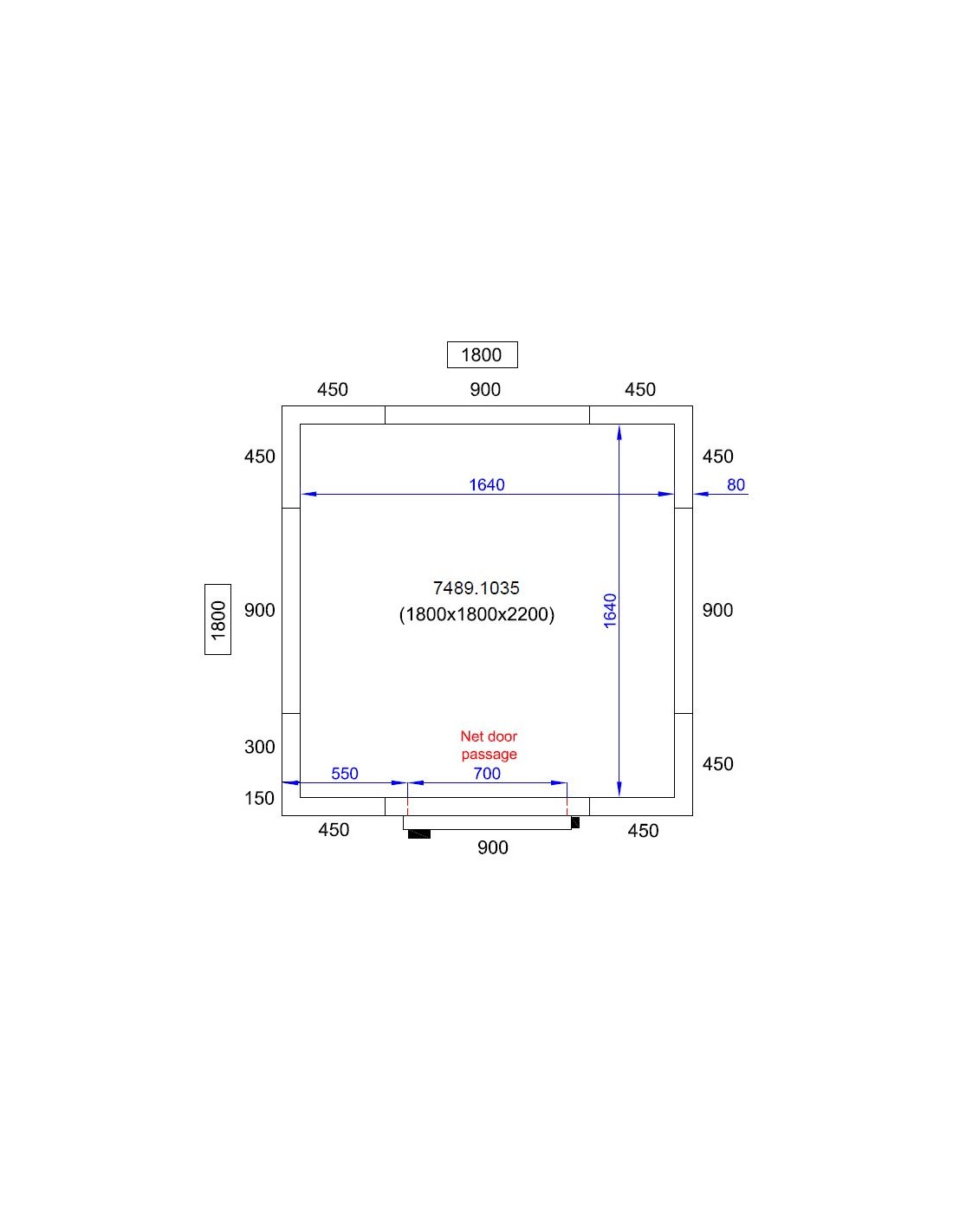 - **Dimensions extérieures** : 1800 mm (L) x 1800 mm (P) x 2200 mm (H)