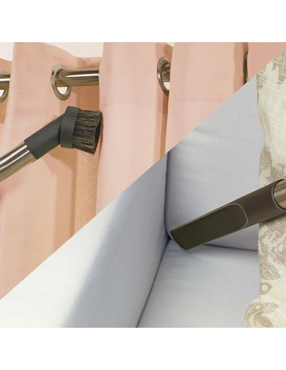Fourni avec kit d'accessoires de 9 pièces pour tapis, sols, rideaux et tissus d'ameublement