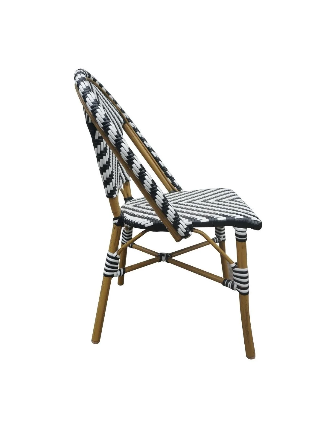 Cadre en tube d'aluminium, peint au pinceau avec une finition bois grainé, assise en rotin synthétique (PE)