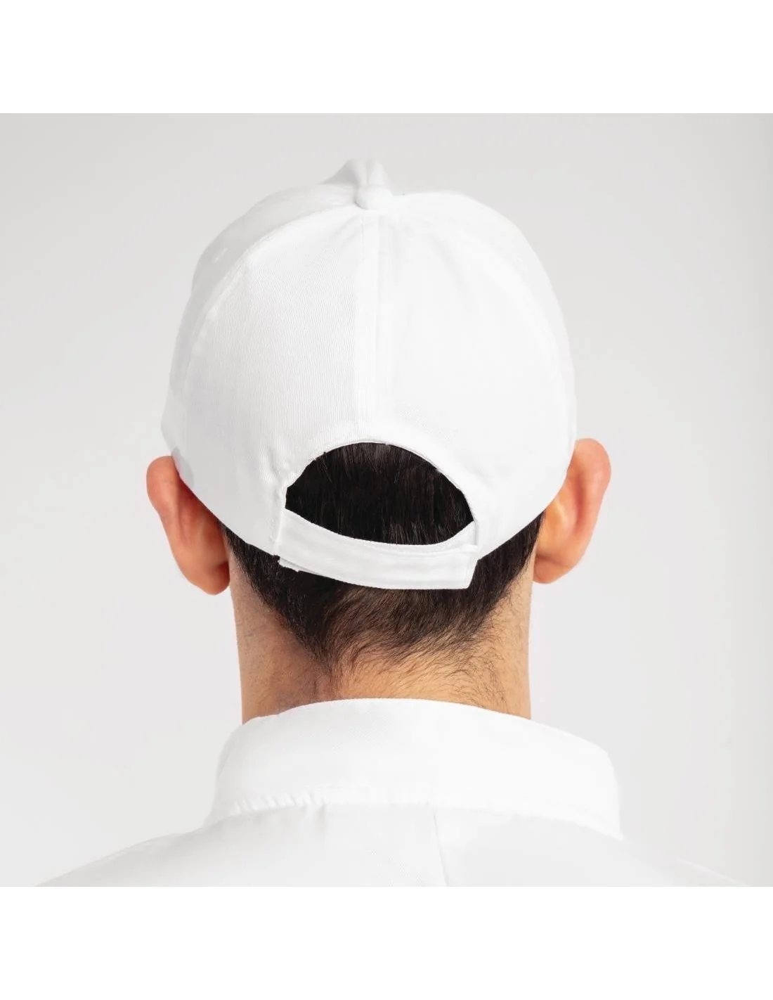 Blanc. Taille unique avec sangle réglable.