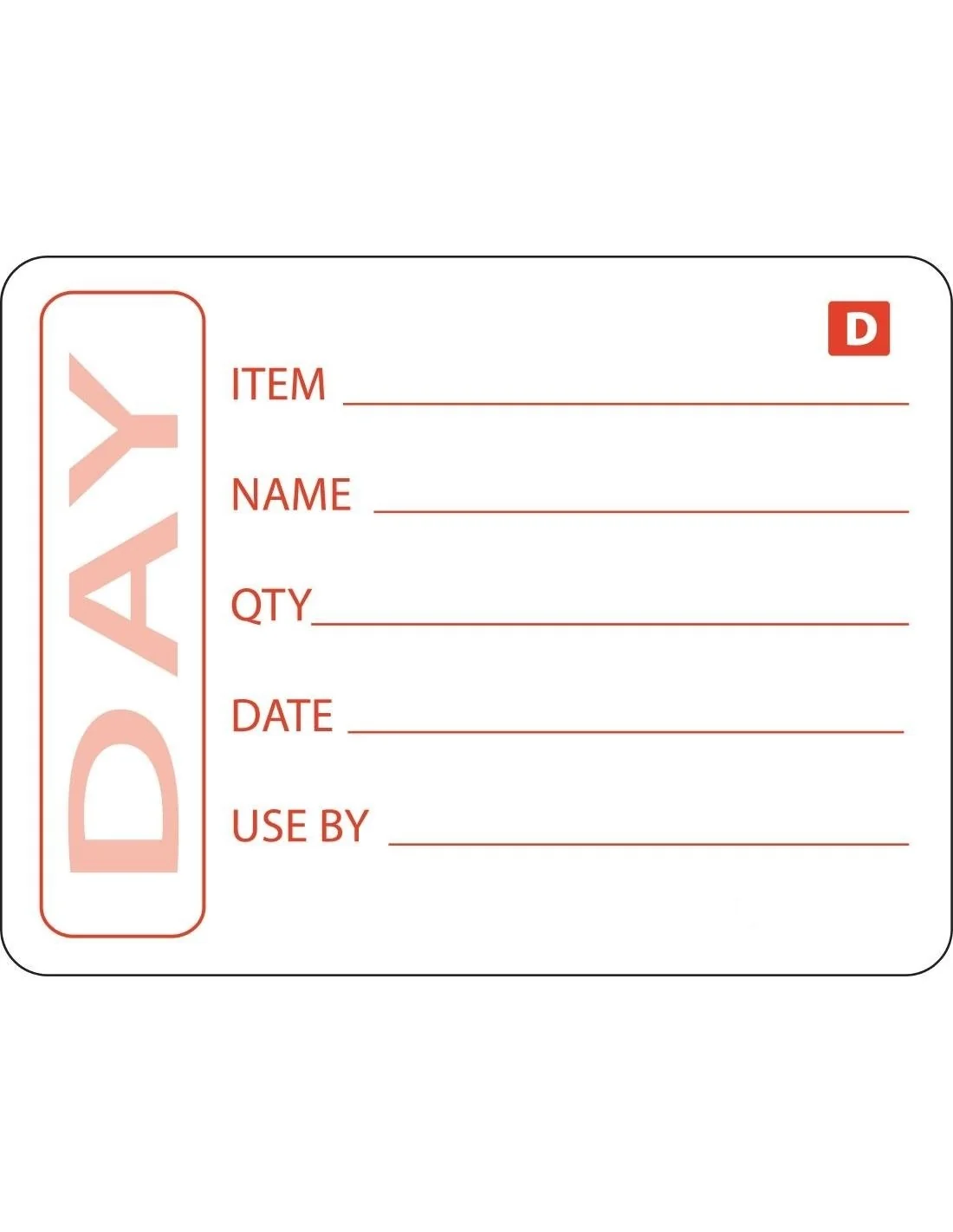 Les étiquettes comportent des sections relatives à l'article, au nom, à la quantité, à la date et à la date limite de consommation qui permettent un étiquetage précis