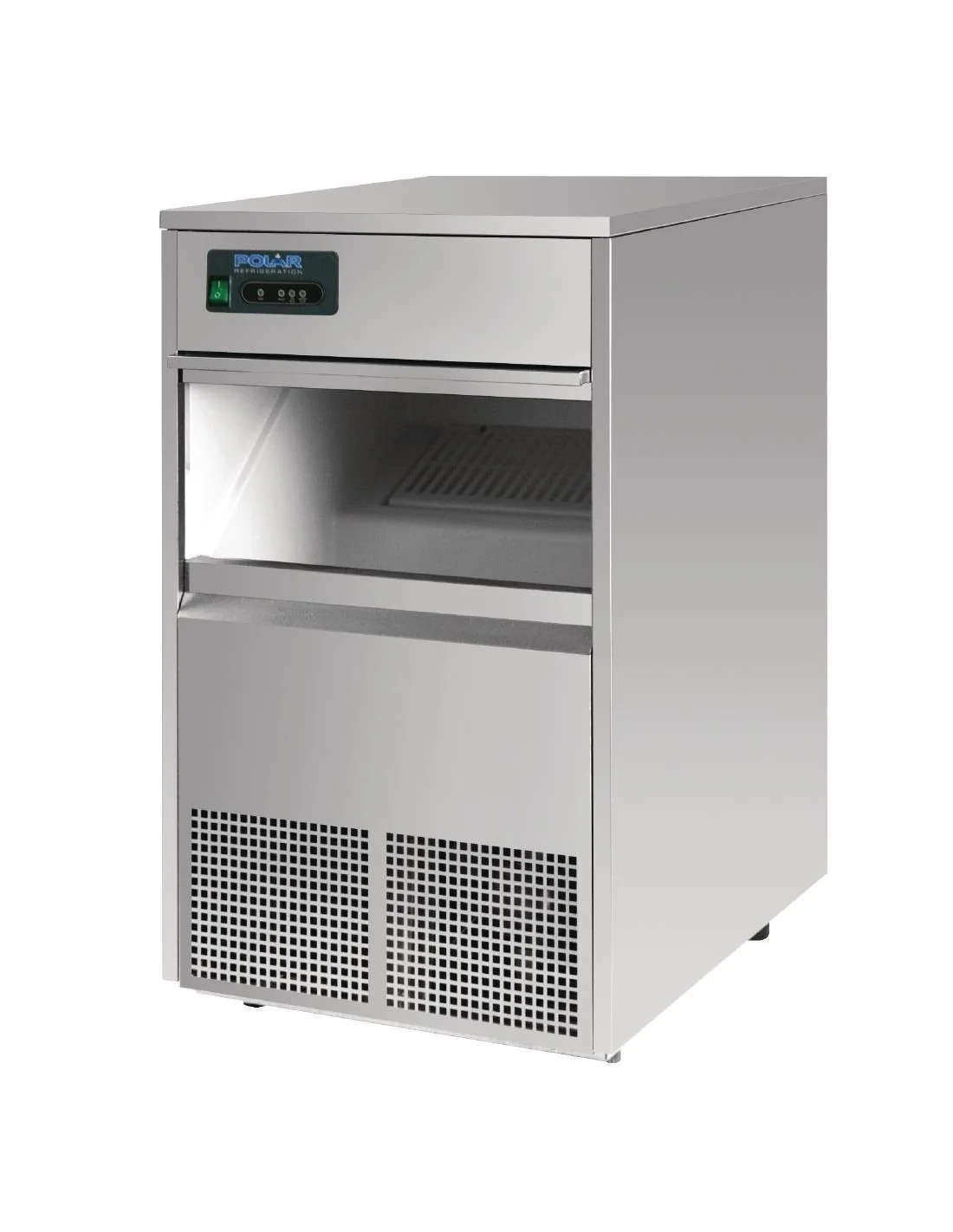 La glace est distribuée dans le bac d'une capacité de 10 kg, prête à être utilisée immédiatement. NB : Le bac à glace n'est pas réfrigéré, il est donc nécessaire d'enlever les glaçons au fur et à mesure de leur production.