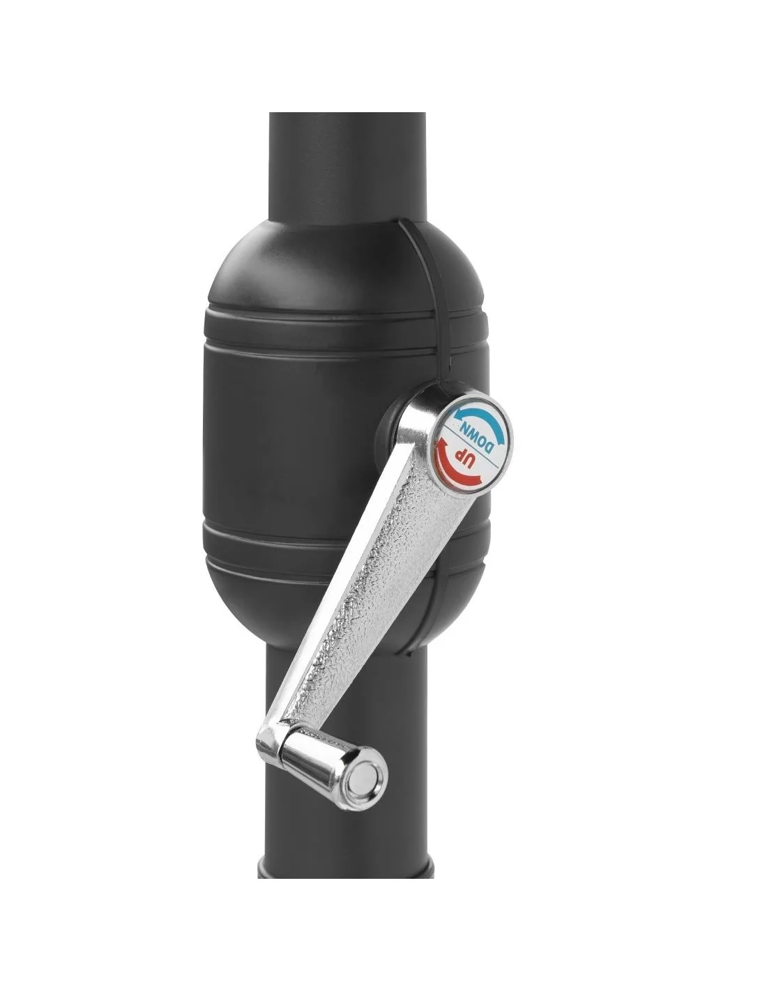 Inclut une manivelle permettant une ouverture et une fermeture faciles du parasol