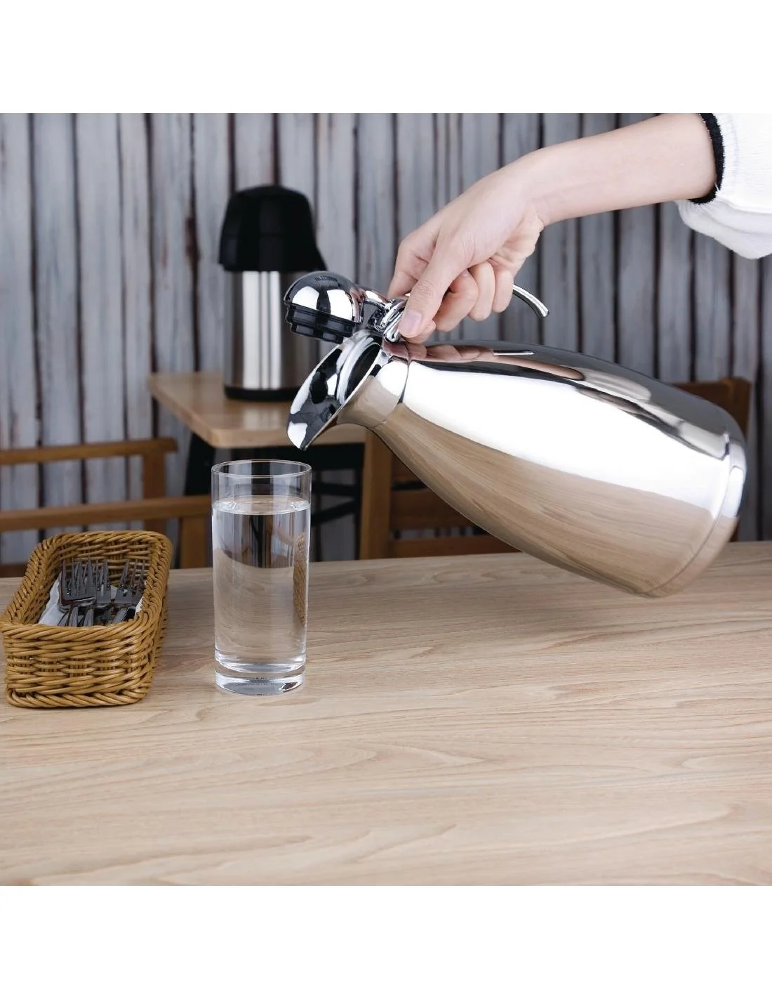 La finition chromée donne au pichet un aspect attrayant
