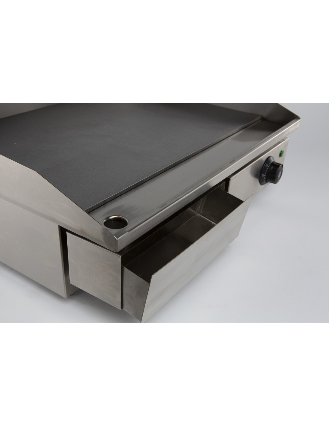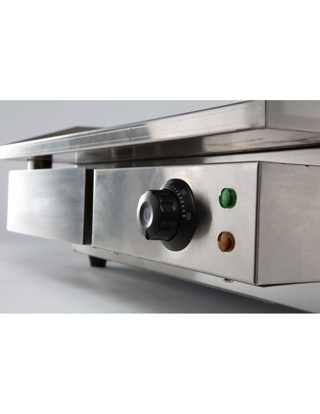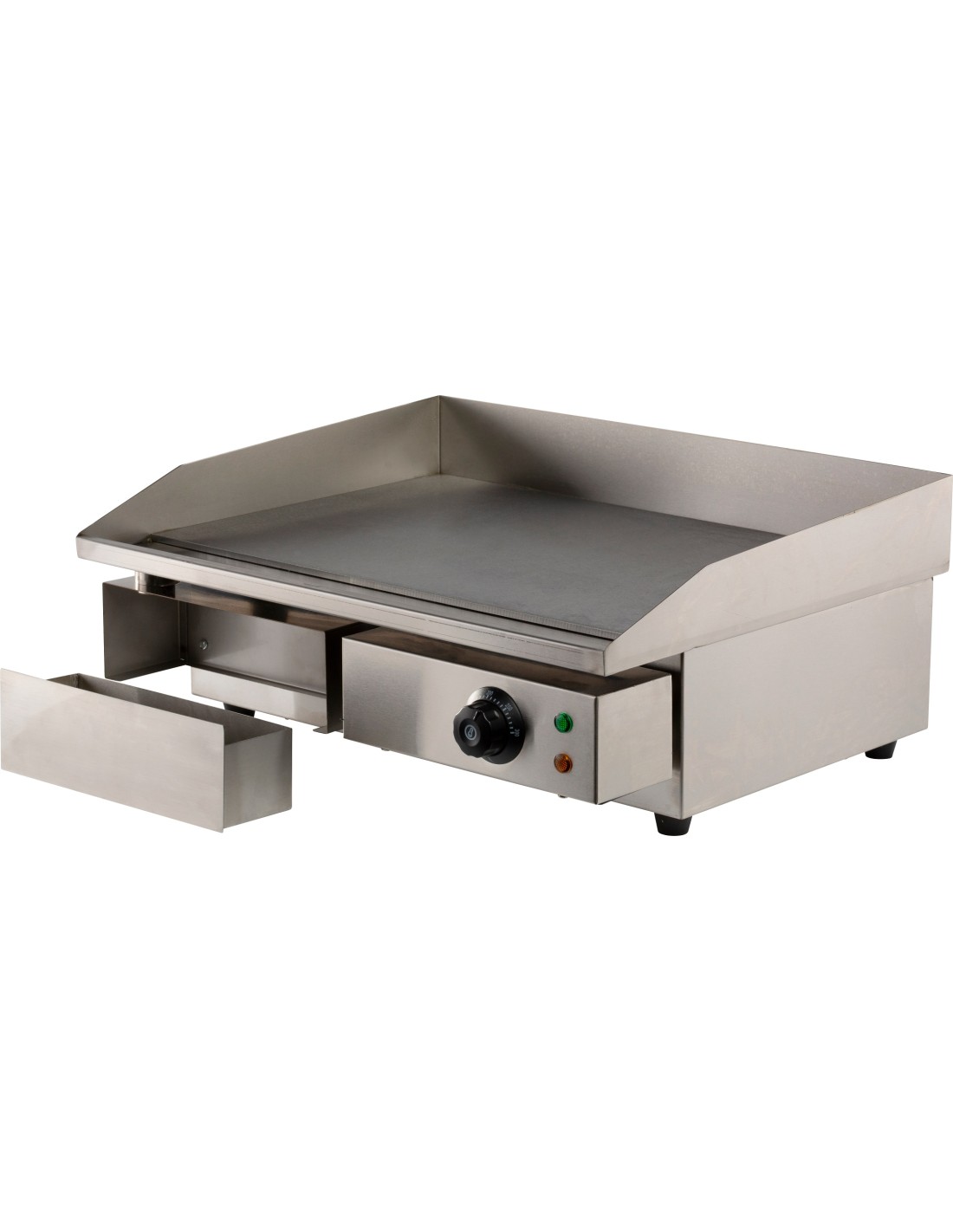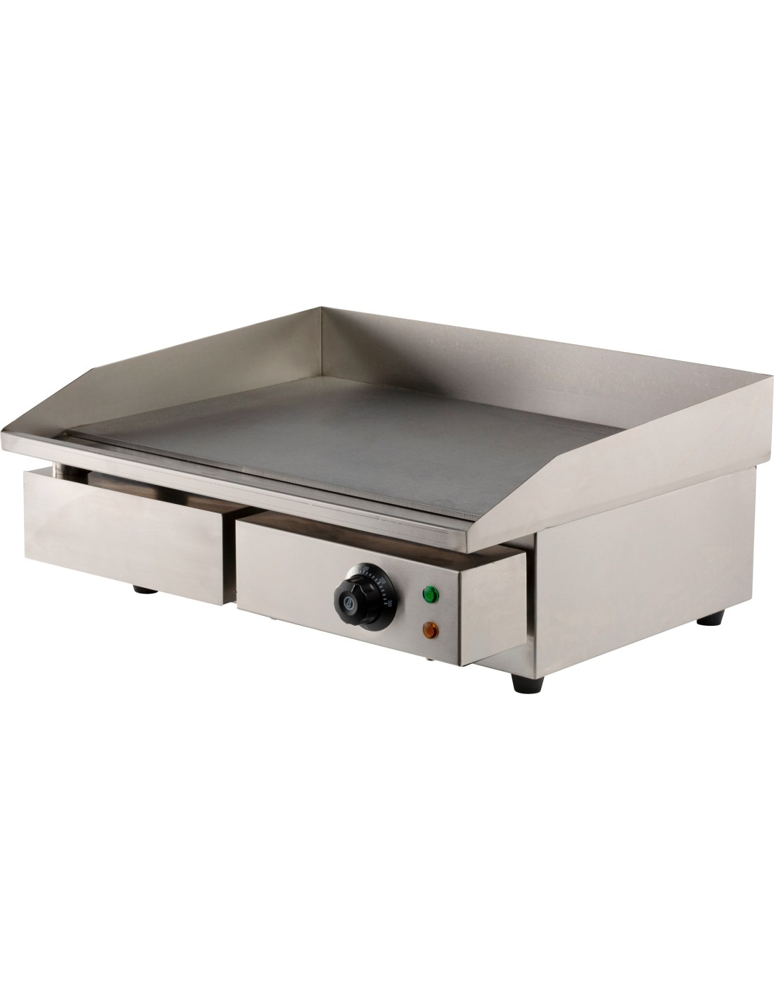 Cette plaque grill compacte est idéale pour un usage domestique ainsi que pour les petites cuisines professionnelles. Elle assure une répartition uniforme de la chaleur et offre un contrôle précis de la température. Le boîtier en acier inoxydable robuste et le bac de récupération d'huile amovible facilitent le nettoyage. Préparez les plats les plus délicieux avec aisance et style. Les dimensions sont 550x470x230 mm (LxPxH) - consommation 3 kW - poids 20 kg.