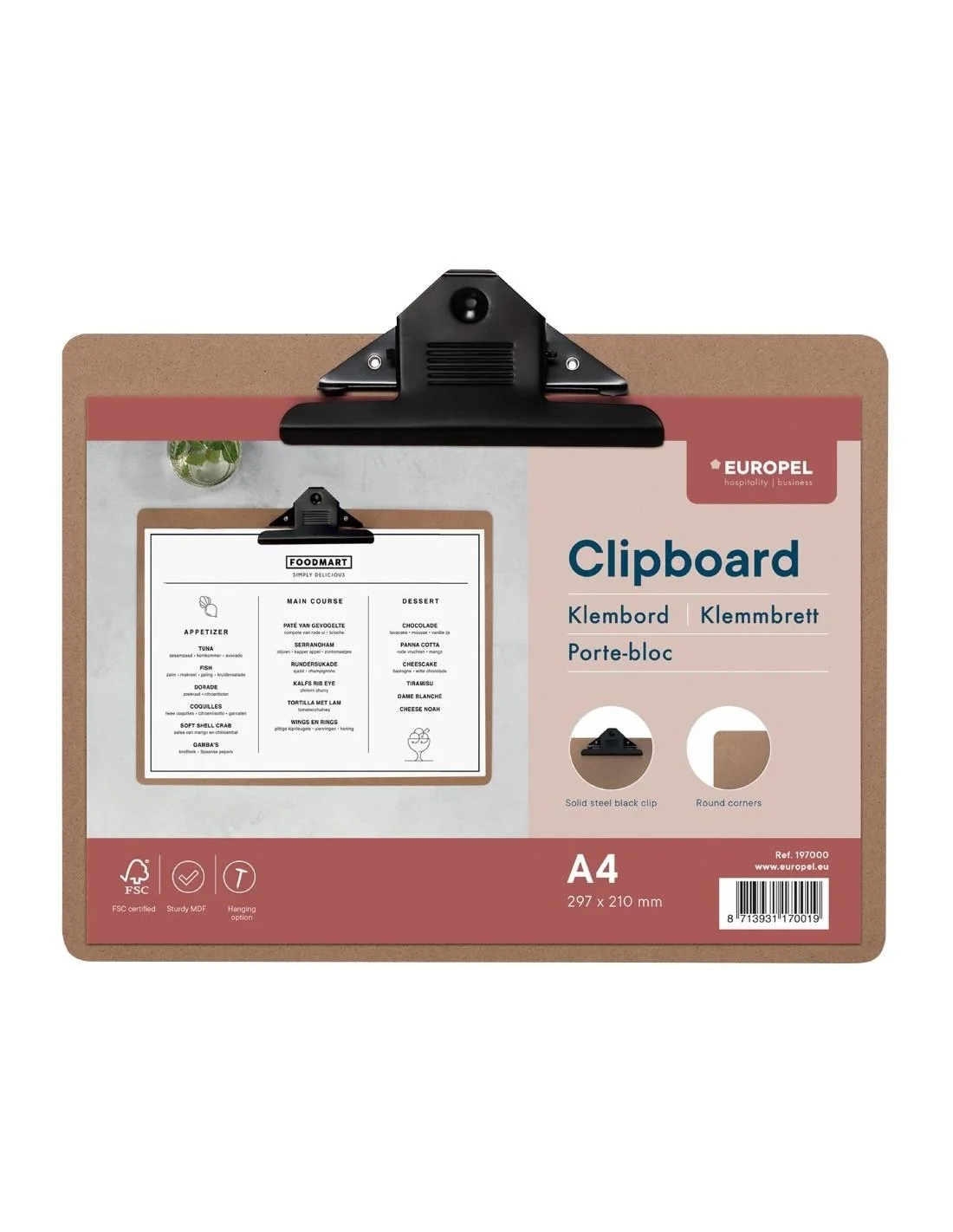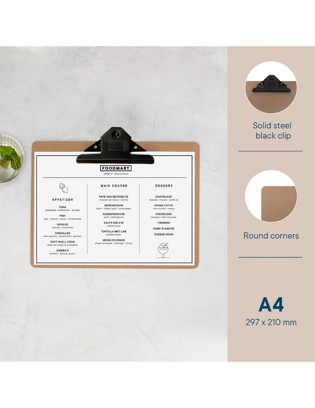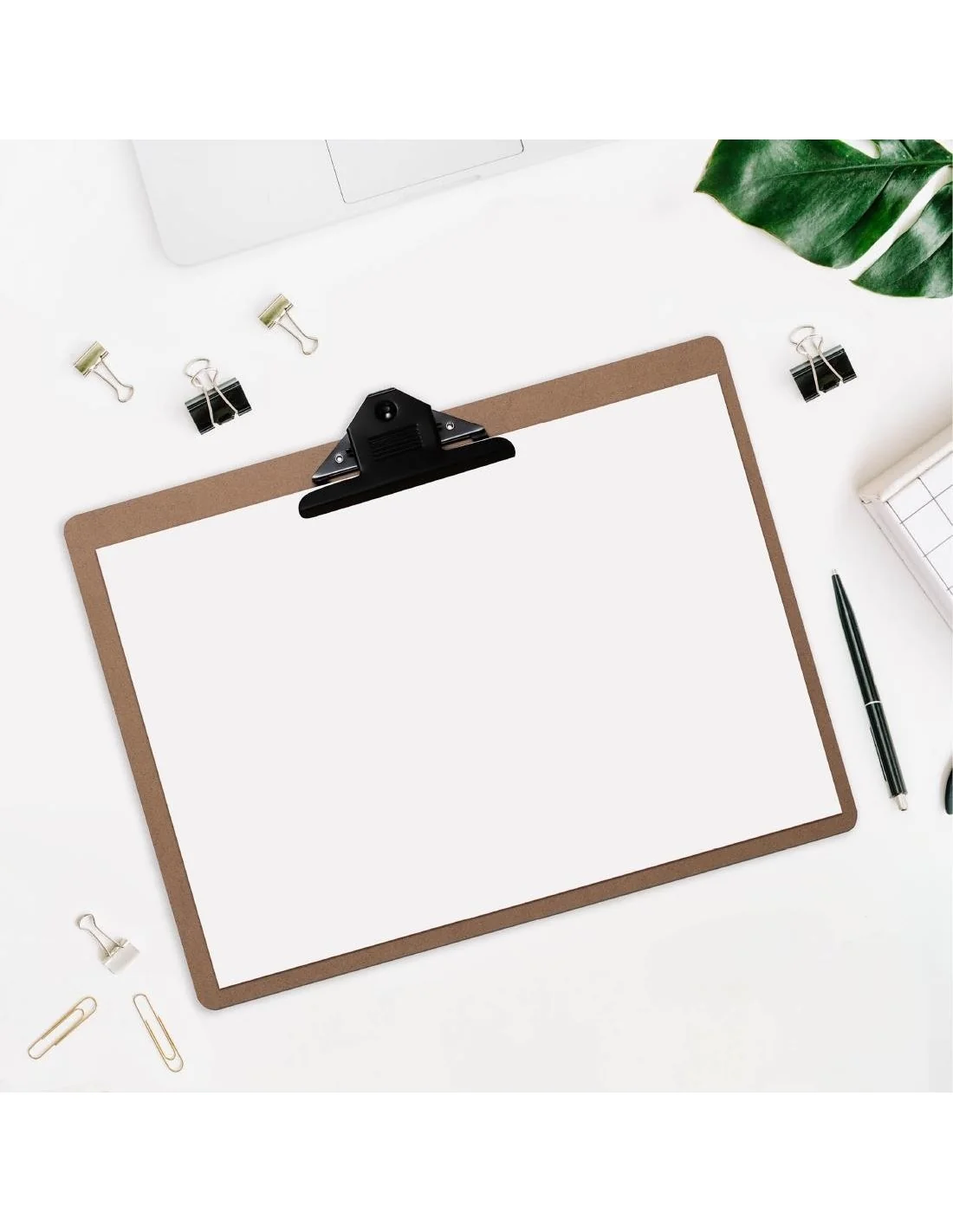 Prise sûre : Le porte-bloc en bois est équipé d'une pince en métal noir de 143 mm pour garder les documents importants en place et bien organisés.