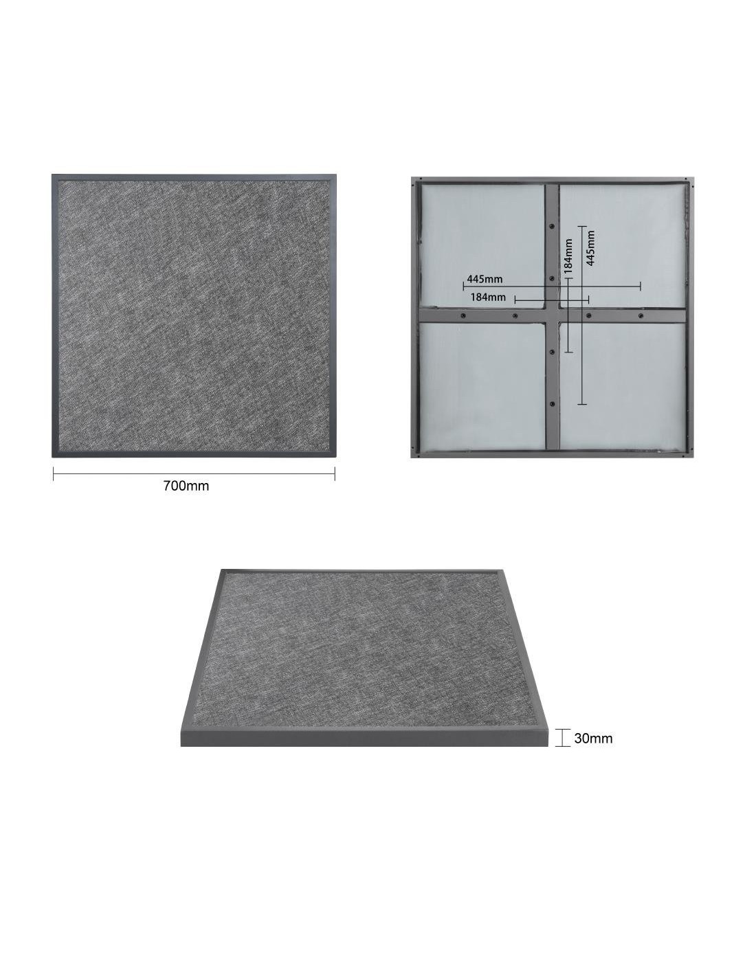 Couleur : noir brossé. Dimensions : 38(H)x700(L)x700(L)mm