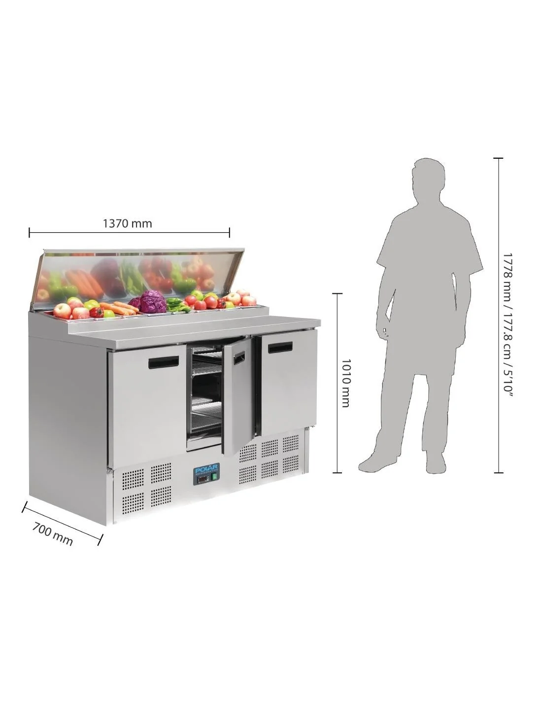 235W. Plan de travail inox 304. R600a