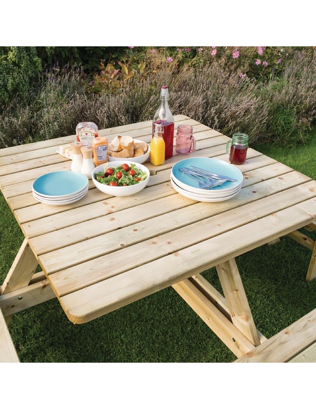 La construction robuste et les fixations en acier inoxydable confèrent à cette table une grande résistance